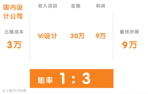 再看设计公司VI比稿的赔率。(以服务一间中型企业VI为例)