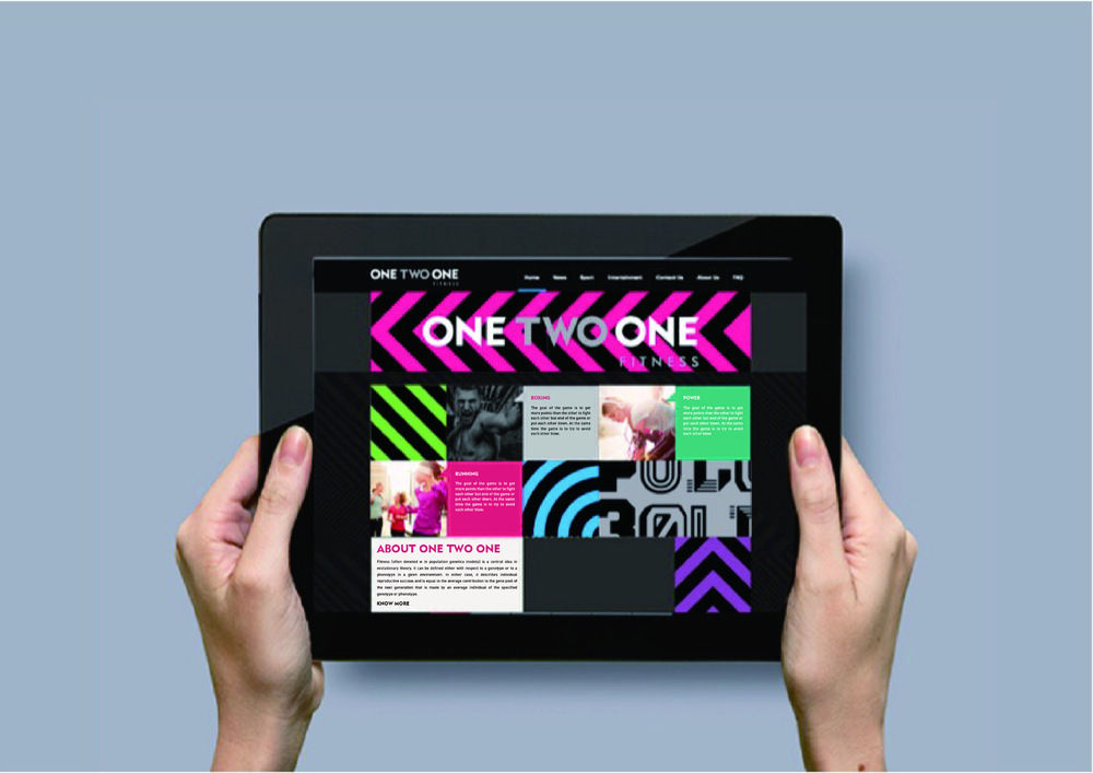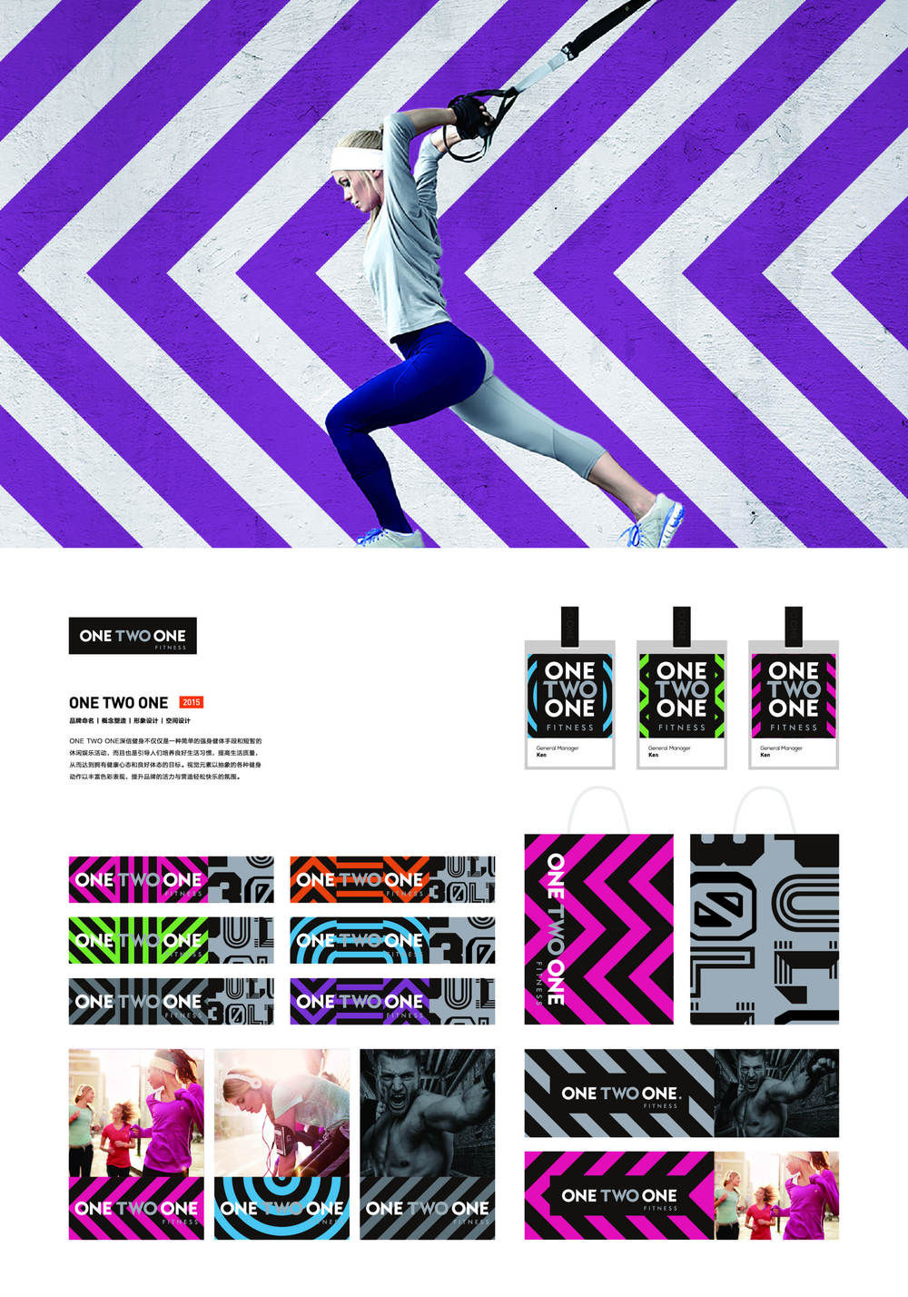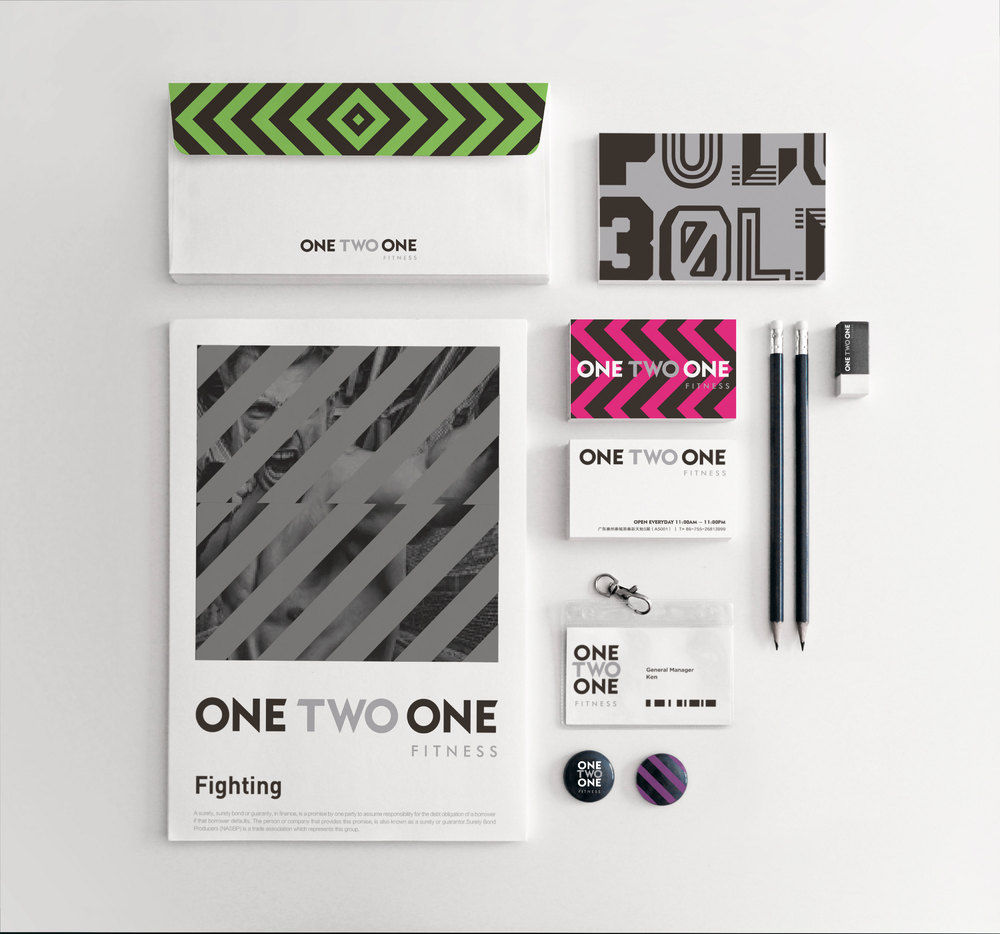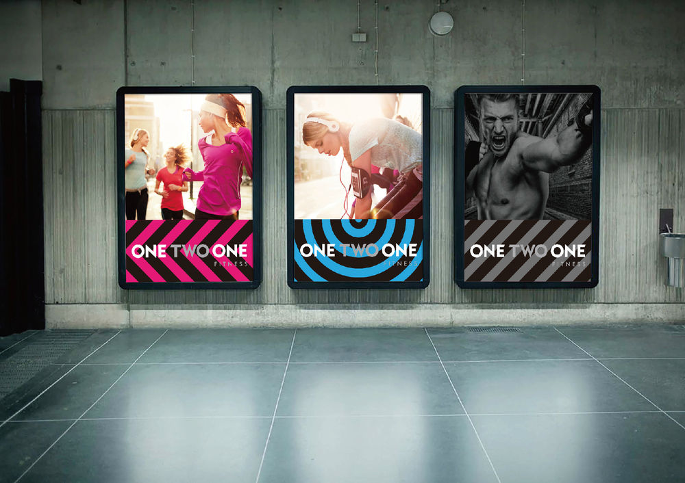 再通过形象上的环境应用,很好地为ONE TWO ONE营造愉悦氛围,打破以往的健身枯燥印象,让品牌形象更时尚更具吸引力。